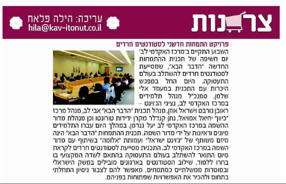 פרוייקט התמחות חדשני לסטודנטים חרדים, בקהילה